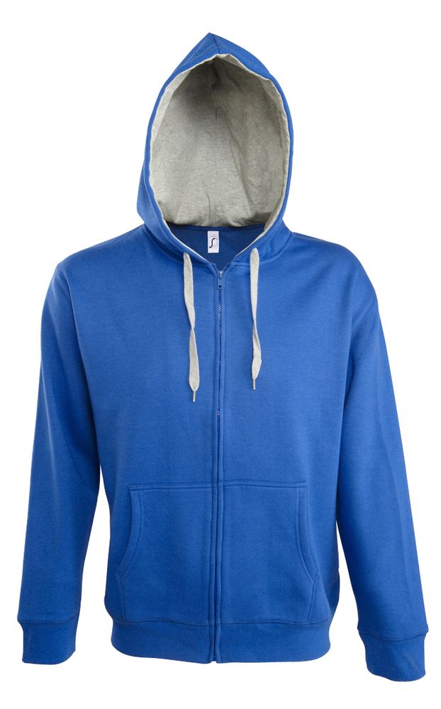 Толстовка мужская на молнии Soul Men 290 с контрастным капюшоном, ярко-синий, размер S