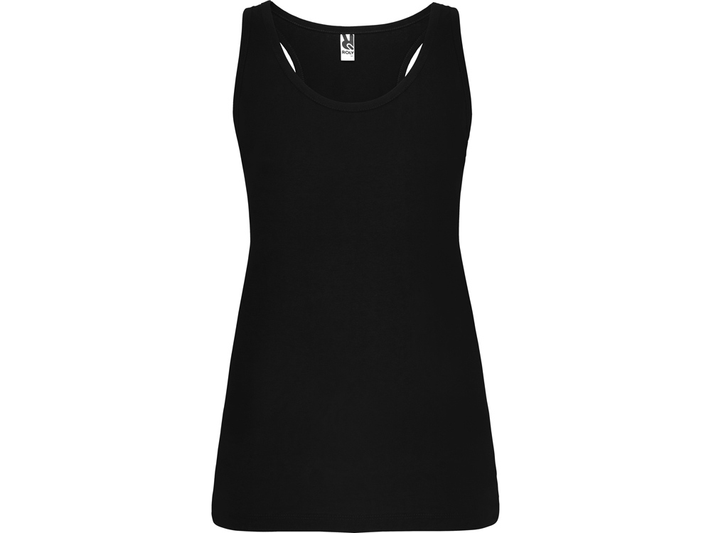 Майка узкого силуэта, горловина и проймы обработаны рибом. Спортивная спинка, боковые швы.