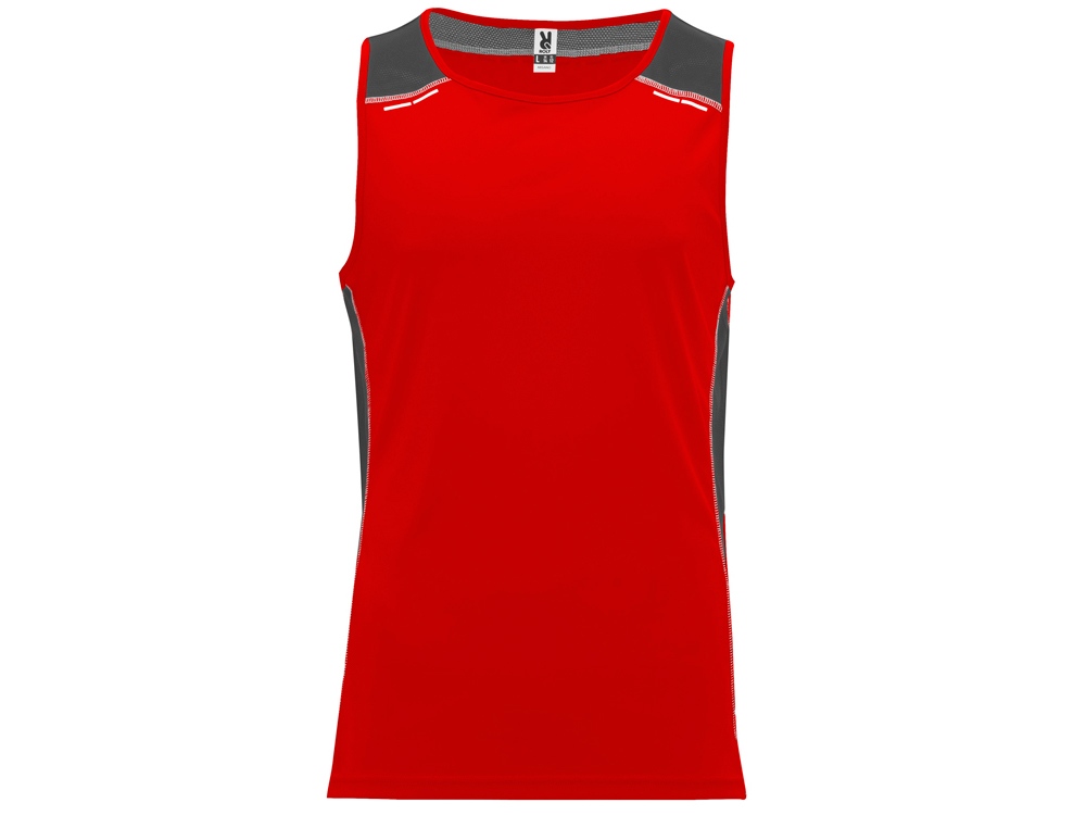 Спортивная майка со светоотражающими деталями. Круглый вырез горловины укреплен декоративной строчкой. Комбинация двух полиэстеровых полотен: основное полотно интерлок, боковые и верхние вставки из микроперфорированного полотна для повышенной воздухопроницаемости. Технологичное полотно быстро сохнет.