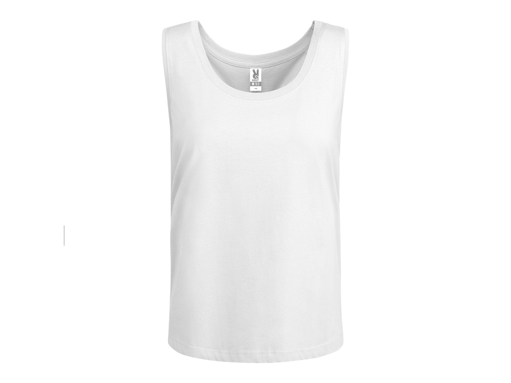 Свободная женская футболка с широкими бретелями. Вырез и проймы обработаны бейкой из риба 1x1. Подол округлой формы. Боковые швы.