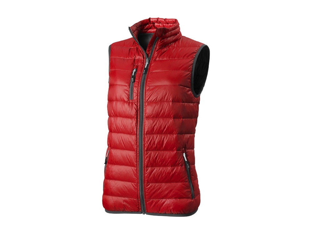 Женская пуховая жилетка Fairview. Стандартный покрой. Ткань не пропускает пух. Карманы для рук и нагрудный на молнии. Внутренний противоветровой клапан и защита подбородка. Эластичная обшивка внизу и на проймах. Ткань дышащая, ветронепроницаемая и влагоотталкивающая. Отражающий лого сзади. Ремешки на собачку (второй комплект в цвете антрацит). Жилет - версия победителя премии Reddot, куртки Scotia. Ткань из 100% нейлона с матовым и блестящим водоотталкивающим покрытием, 20D. 80% пух и 20% перо.