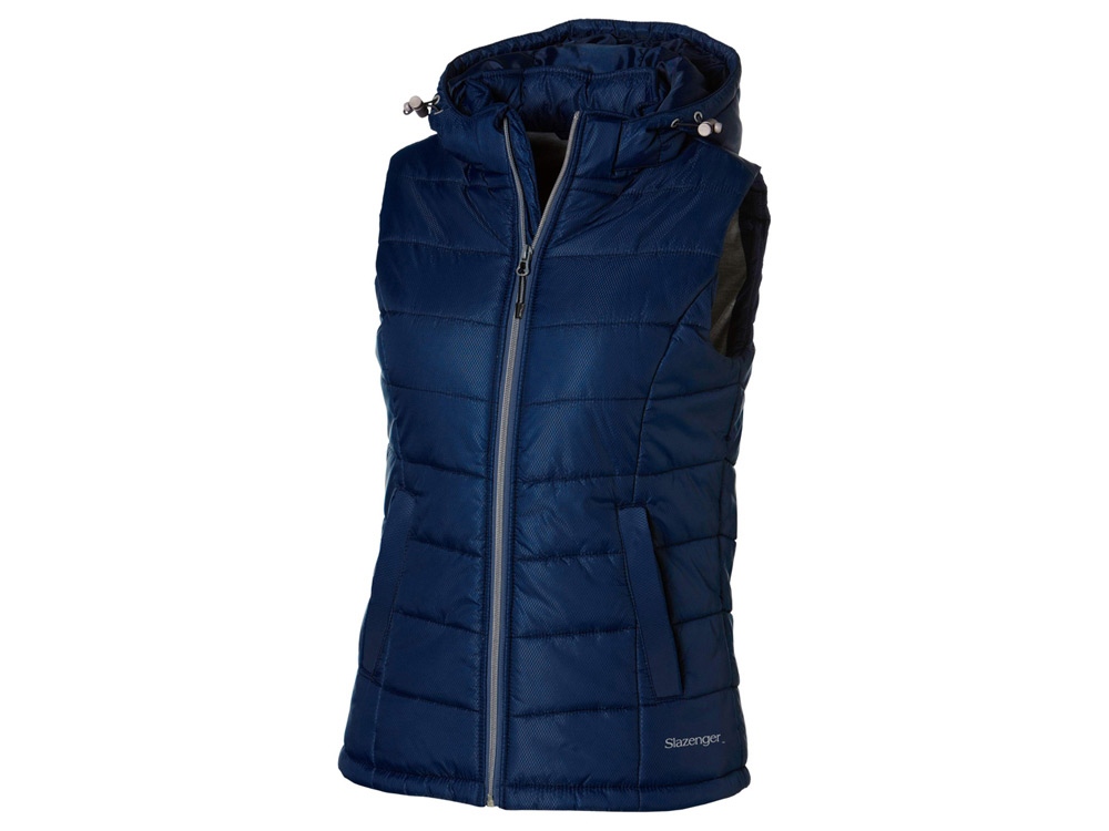 Женский жилет Mixed Doubles. Прилегающий покрой. Отстегивающийся капюшон. Эластичные завязки со стопперами внизу. Карманы для рук. Петелька для застежки. Внутренний карман. Контрастного цвета одинарная подкладка. Ткань с ромбовидным рисунком, 100% нейлон с белым AC покрытием. Термотрансфер (1 цвет (цветные изделия)) на данный товар осуществляется бесплатно. Оплачивается только настройка оборудования в размере 8700 рублей на весь тираж.