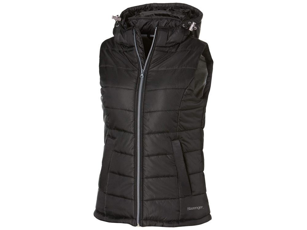 Женский жилет Mixed Doubles. Прилегающий покрой. Отстегивающийся капюшон. Эластичные завязки со стопперами внизу. Карманы для рук. Петелька для застежки. Внутренний карман. Контрастного цвета одинарная подкладка. Ткань с ромбовидным рисунком, 100% нейлон с белым AC покрытием. Термотрансфер (1 цвет (цветные изделия)) на данный товар осуществляется бесплатно. Оплачивается только настройка оборудования в размере 8700 рублей на весь тираж.