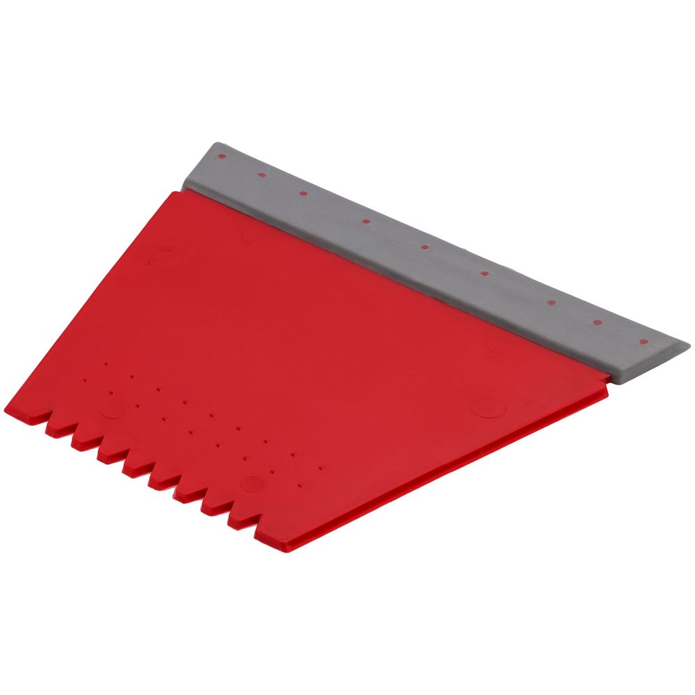 Все 4 стороны скребка рабочие: резиновый водосгон с широкой стороны, зубья-ледорубы с узкой и две скошенные грани по бокам.