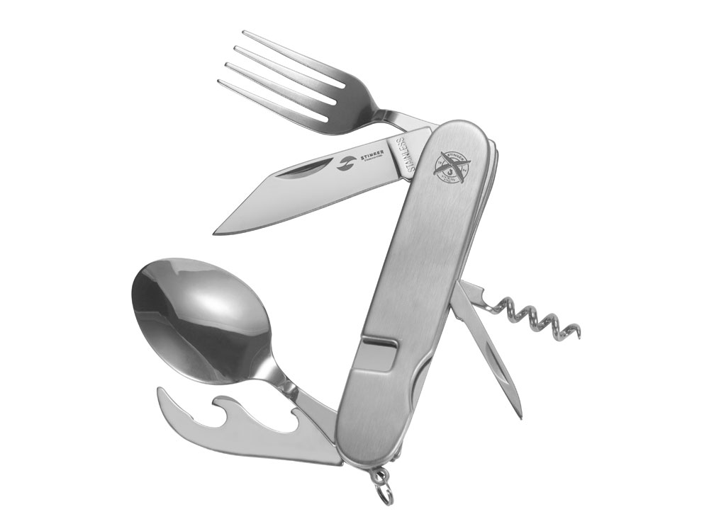 Нож перочинный Stinger, 109 мм, 8 функций, материал рукояти: нержавеющая сталь (серебристый)