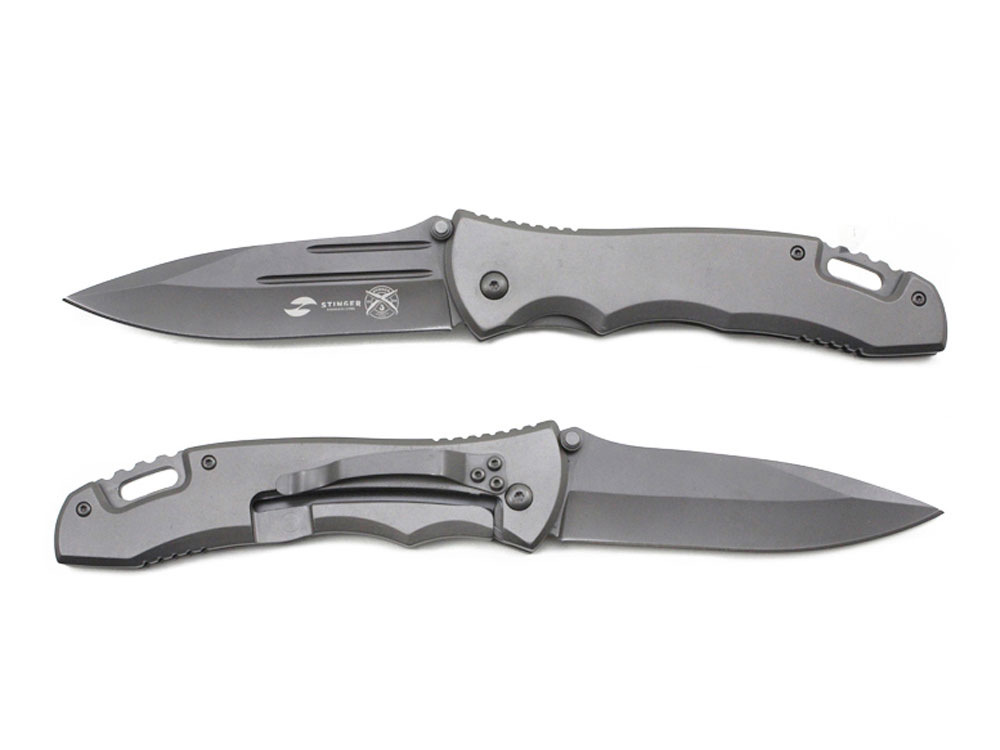 Нож складной Stinger, 102 мм, (серый), материал рукояти: нержавеющая сталь (серый)
