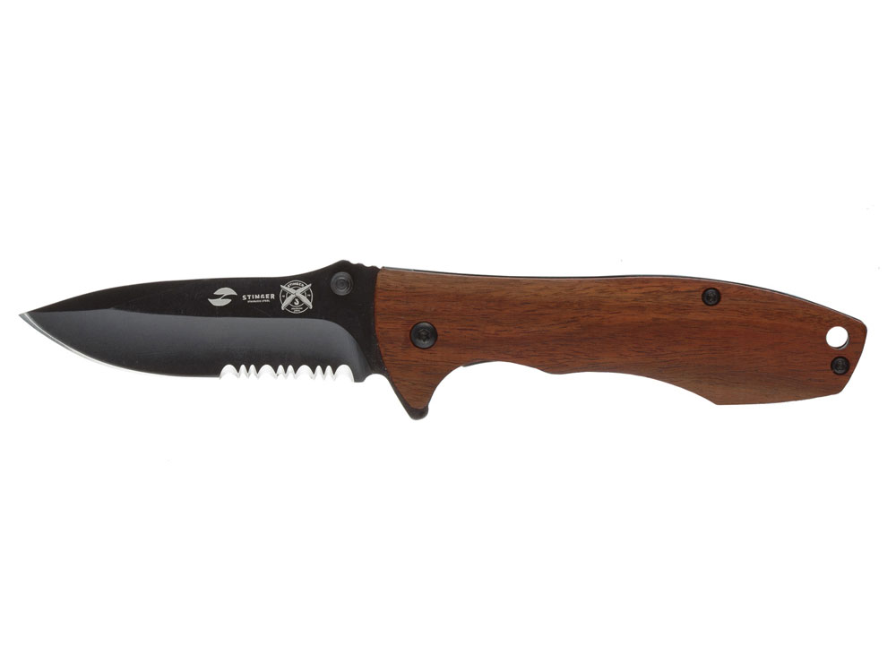 Нож складной Stinger, 80 мм (чёрный), материал рукояти: сталь/сандаловое дерево (коричневый)