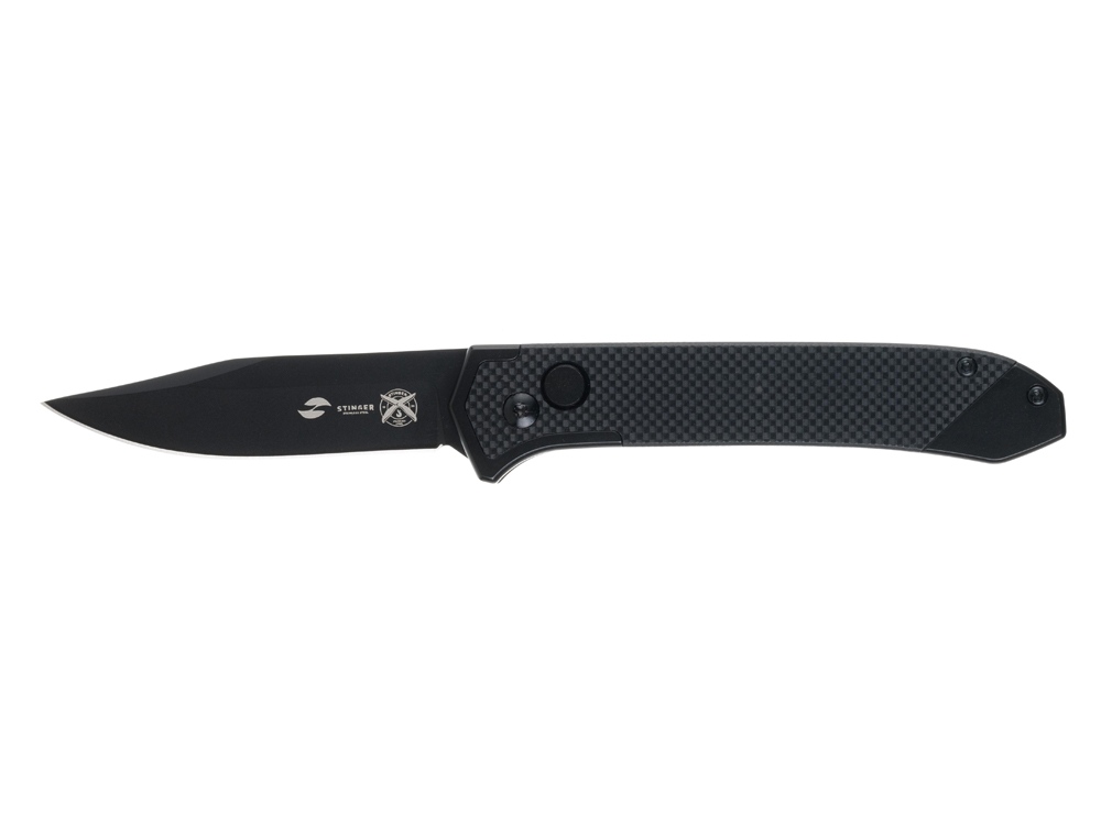 Нож складной Stinger, 115 мм, (черный), материал рукояти: нержавеющая сталь, стеклотекстолит G10