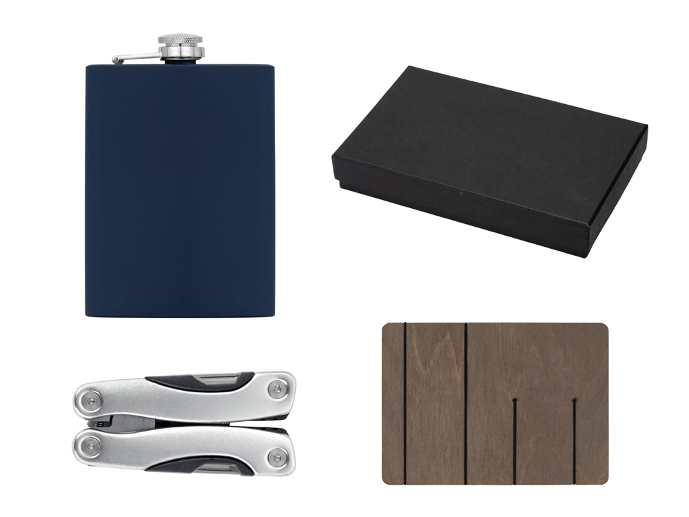 Набор с мультитулом и фляжкой Путешественник 2.0., темно-синий