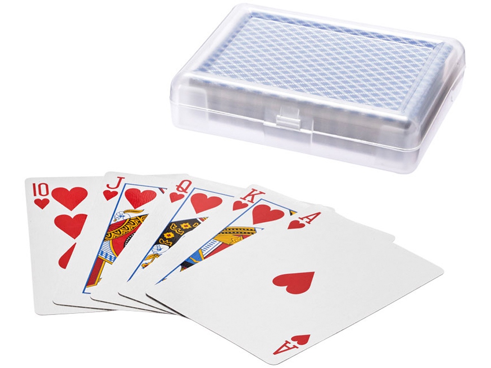 Карточная игра Reno в футляре. Классическая карточная колода с 3 джокерами. Упакована в пластиковый футляр.