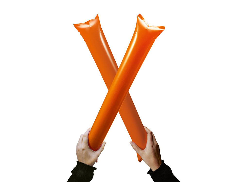 Надувные палки-стучалки, доступны в различных цветах. 600 x 100 мм. Вид нанесения, рекомендуемый поставщиком: трафаретная печать.