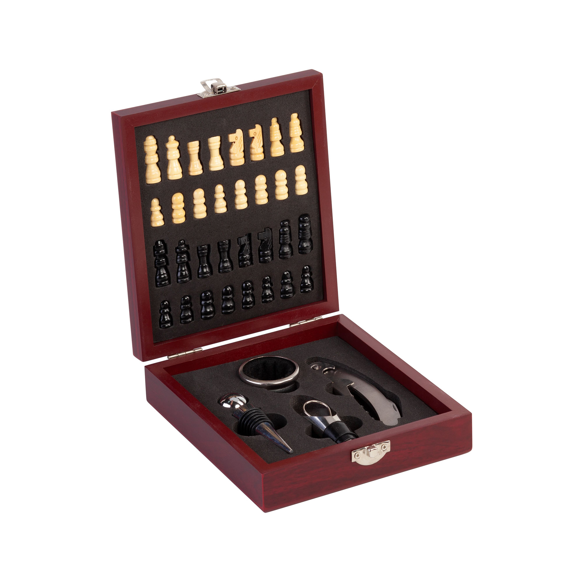 С набором из винных аксессуаров, в котором идут шахматы - вы сможете разнообразить свой досуг, приятно провести время с друзьями.