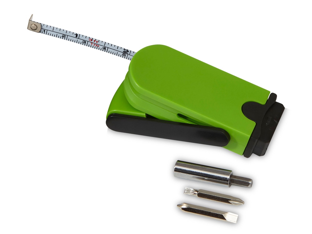 Набор инструментов Branch с рулеткой. Выдвижной инструмент с двумя насадками Philips и двумя плоскими насадками- отвертками. В наборе рулетка 1M/3ft. АБС пластик.