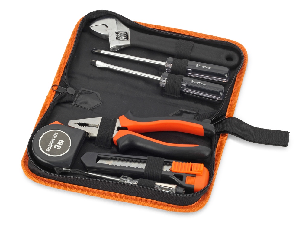 Набор включает в себя необходимый минимум инструментов на случай внеплановых поломок и ремонта. Чехол из прочной ткани надежно зафиксирует и сохранит инструменты - каждый на своем месте. Замечательный подарок мужчин. Термотрансфер (1 цвет (цветные изделия)) на данный товар осуществляется бесплатно. Оплачивается только настройка оборудования в размере 9200 рублей на весь тираж.