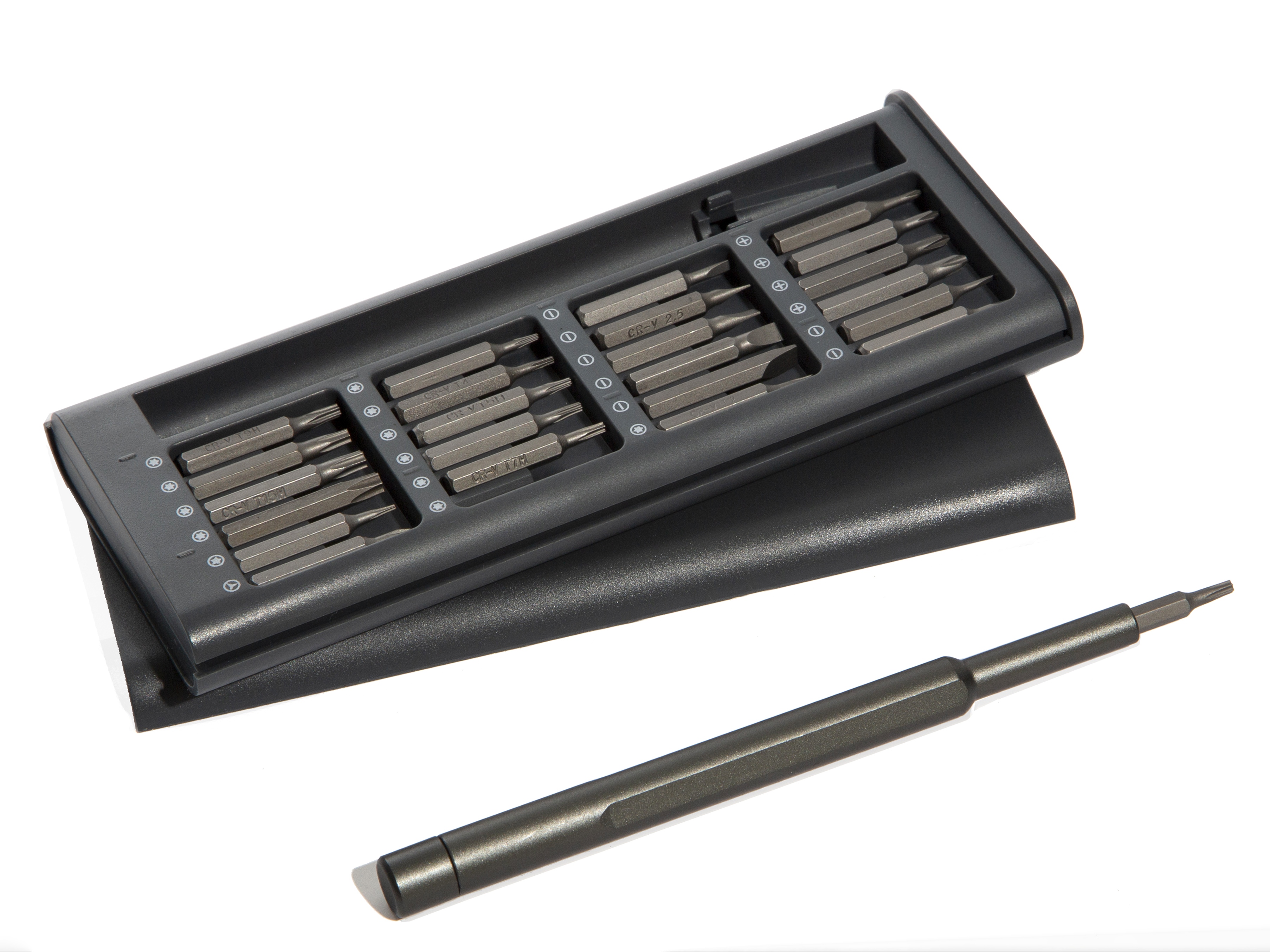 Everybit Lite — это набор отверток 24-в-1, изготовленный из прочной стали CRV и включающий в себя необходимые детали для ремонта смартфонов, планшетов, ПК и игровых консолей. В комплекте с анодированным, противоскользящим и вращающимся колпачком входят долота из закаленной стали с прорезями, крестообразные, шестигранные, Torx, пятилопастные и трехлопастные. Подходит для ремонтных работ с iPhone, iPad, MacBook Air и MacBook Pro, а также Nintendo, PlayStation и XBox. Кейс выполнен из пластика.