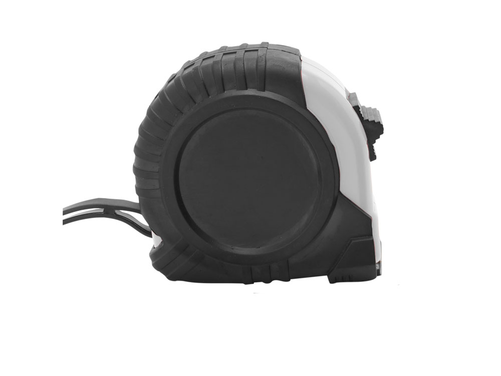 5-метровая рулетка с фиксирующим механизмом. Цветной прорезиненный корпус с резиновым чехлом, металлический зажим и ремешок для переноски.
