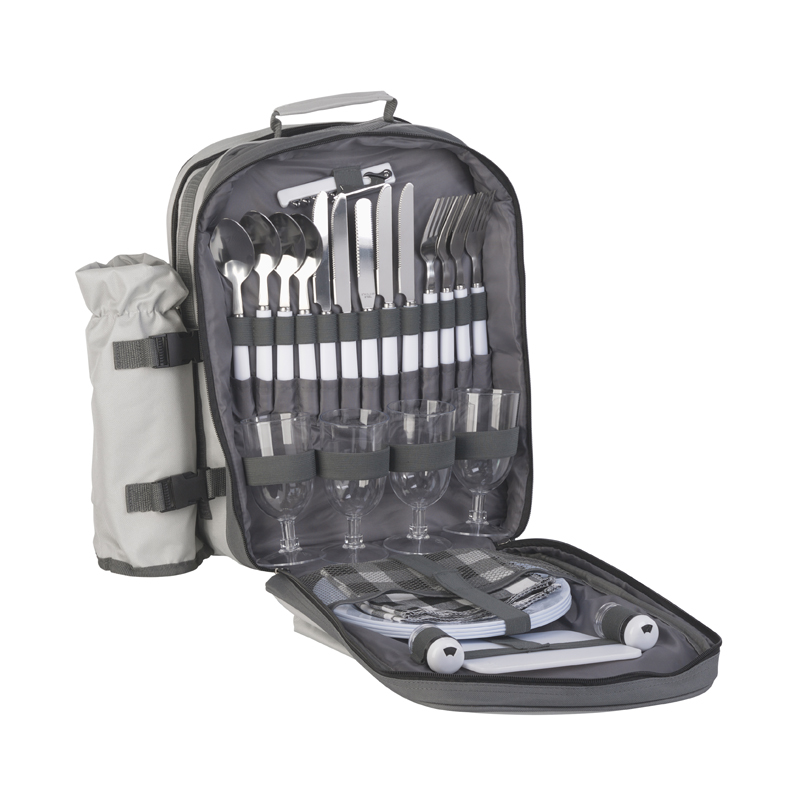 Рюкзак для пикника "Дания" с комплектом приборов на 4 персоны. Большое холодильное отделение и съемный кулер для термоса (бутылки вина).