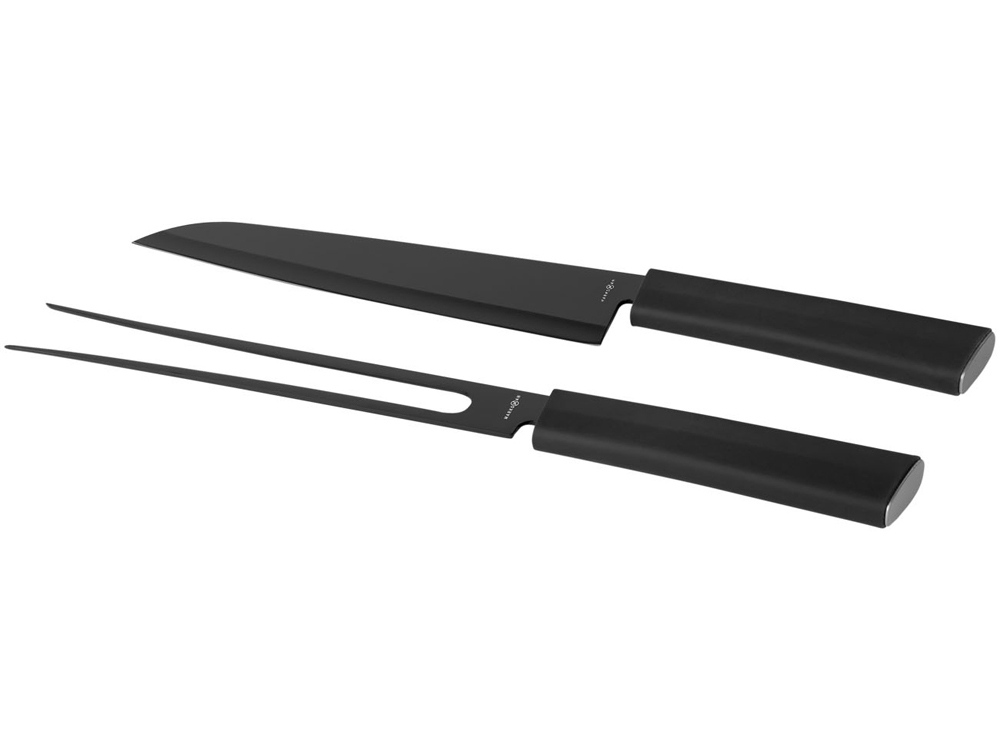 Профессиональный нож 8 из нержавеющей стали снабжен антипригарным покрытием и хорошо заточенным краем для превосходной резки. Вилкой можно придерживать жаркое и другую еду для аккуратной нарезки и подачи. Представляется в подарочной коробке Marksman. Эксклюзивный дизайн.