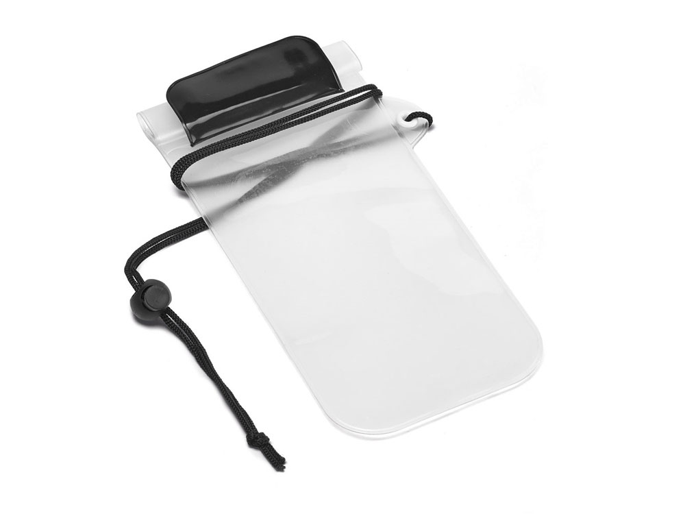 Водонепроницаемый чехол для мобильного телефона из PVC с регулируемым ремешком с пружиной. Передняя часть прозрачная, задняя - белая матовая. Позволяет взаимодействовать с экраном снаружи. Чехол имеет герметичную застежку и цветной клапан с застежкой-липучкой. 95 x 240 мм