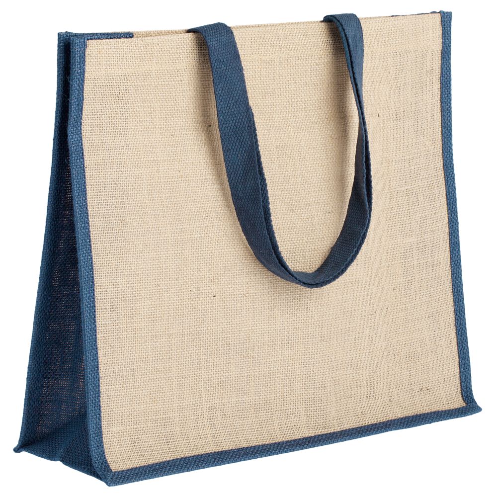 Холщовая сумка для покупок Bagari со светло-синей отделкой