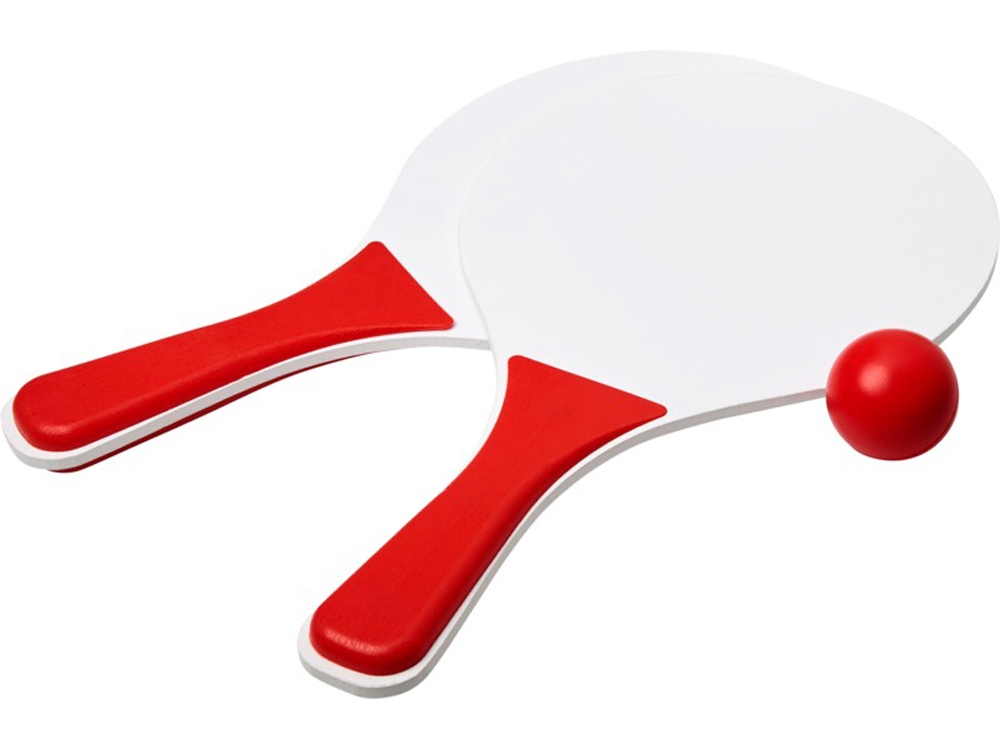 Набор для пляжных игр Bounce. С этим набором пляжных игр, предлагаемым в широкой цветовой гамме, всегда весело. Этот прочный набор пляжных игр изготовлен из дерева МДФ с цветной ручкой из полипропилена. Упаковано вместе с мягким шариком одного цвета в сетчатую упаковку, что позволяет провести веселый день на пляже. МДФ.