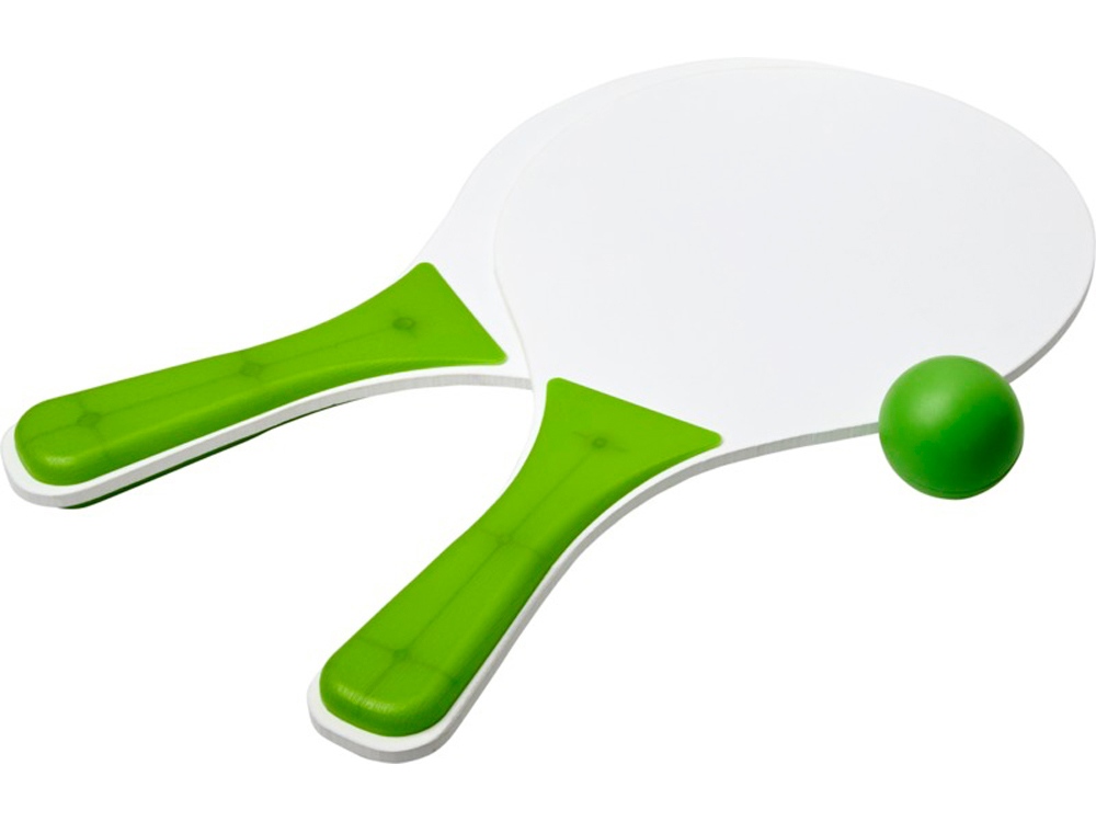 Набор для пляжных игр Bounce. С этим набором пляжных игр, предлагаемым в широкой цветовой гамме, всегда весело. Этот прочный набор пляжных игр изготовлен из дерева МДФ с цветной ручкой из полипропилена. Упаковано вместе с мягким шариком одного цвета в сетчатую упаковку, что позволяет провести веселый день на пляже. МДФ.