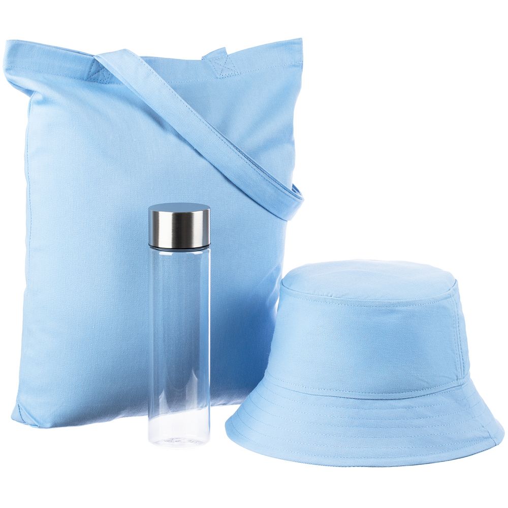 бутылка - пластик, металл, панама - хлопок 100%, пластик, сумка - хлопок 100%, хлопок 100%