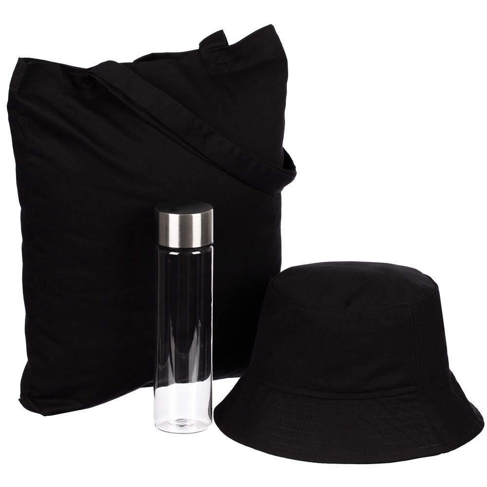 бутылка - пластик, металл, панама - хлопок 100%, пластик, сумка - хлопок 100%, хлопок 100%