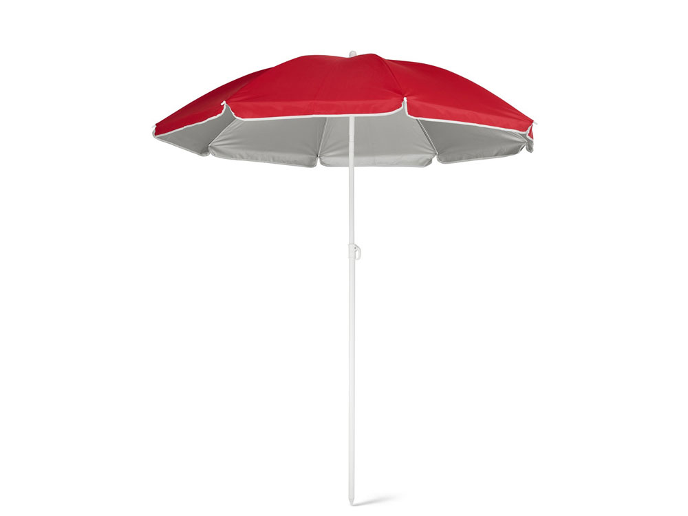 Пляжный зонт от солнца из материала плотностью 210T, с серебристой подкладкой, регулируемой тростью, поставляется в чехле. Вид нанесения, рекомендуемый поставщиком: трансфер, текстильный принтер