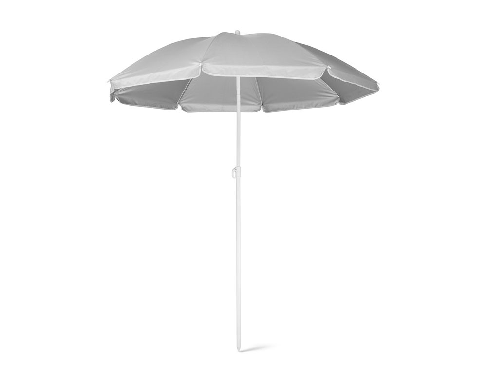 Пляжный зонт от солнца из материала плотностью 210T, с серебристой подкладкой, регулируемой тростью, поставляется в чехле. Вид нанесения, рекомендуемый поставщиком: трансфер, текстильный принтер