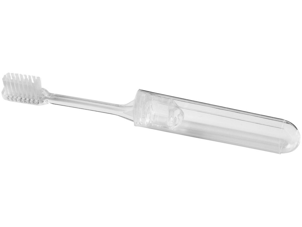 Подарок для путешественника? Что взять с собой в командировку? Дорожную зубную щетку, разумеется. Компактно складывается в прозрачный чехол, на пластиковый корпус возможно нанесение тампопечати. Тампопечать (1 цвет (цветные изделия)) на данный товар осуществляется бесплатно. Оплачивается только настройка оборудования в размере 3600 рублей на весь тираж.
