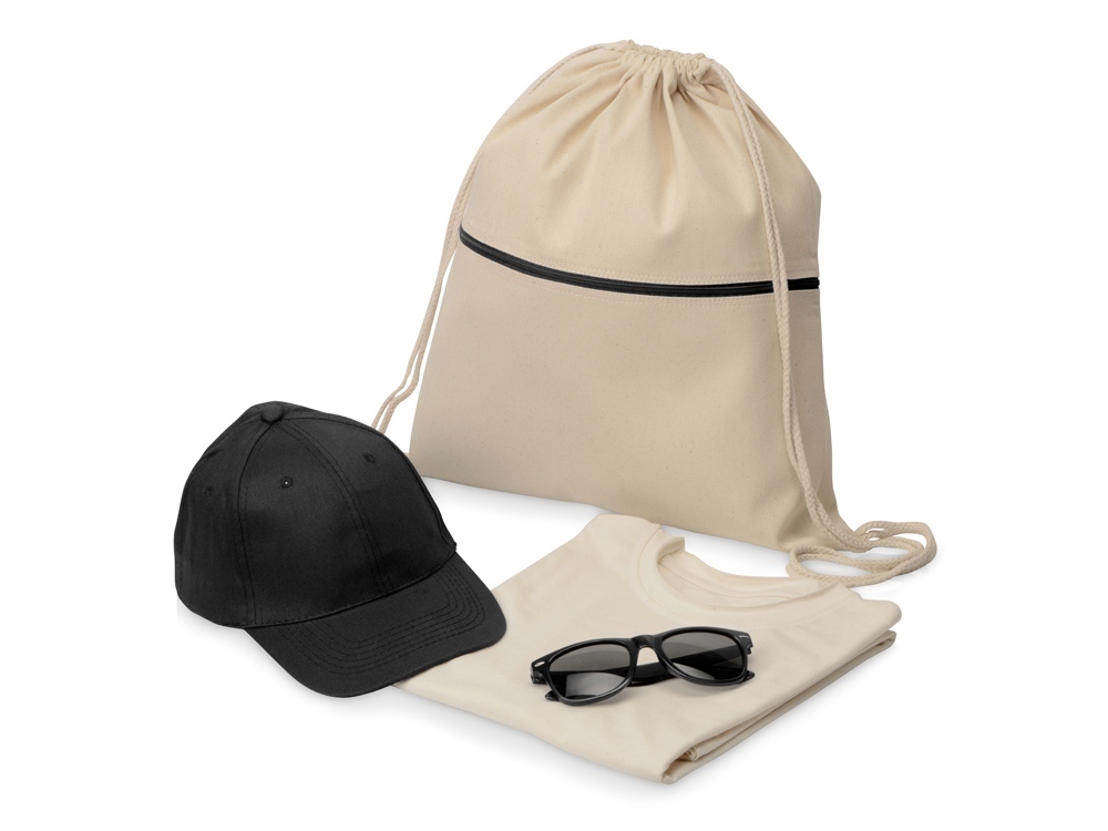 Цвет : рюкзак- натуральный/черный, футболка- натуральный, бейсболка- черный, очки- черный