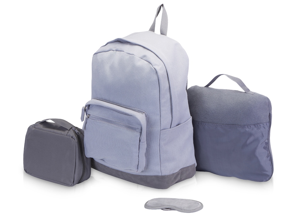 Отличное предложение для тех, кто собрался в путешествие! Рюкзак вмещает до 8 кг и прекрасно подойдет для ручной клади. Пледом можно укрыться в полете или использовать как подушку в пути или в случае длительного ожидания рейса. А чтобы сон был комфортным, воспользуйтесь маской на глаза, которую можно хранить вместе другими необходимыми для путешествия мелочами в удобном несессере. Такой набор обеспечит вам комфорт в пути и удобство в поездке на любом виде транспорта!