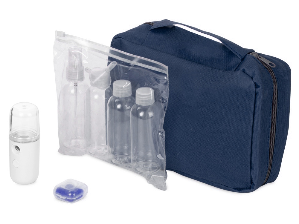 несессер- полиэстер, увлажнитель- пластик, емкости- ПВХ, беруши- полиуретан