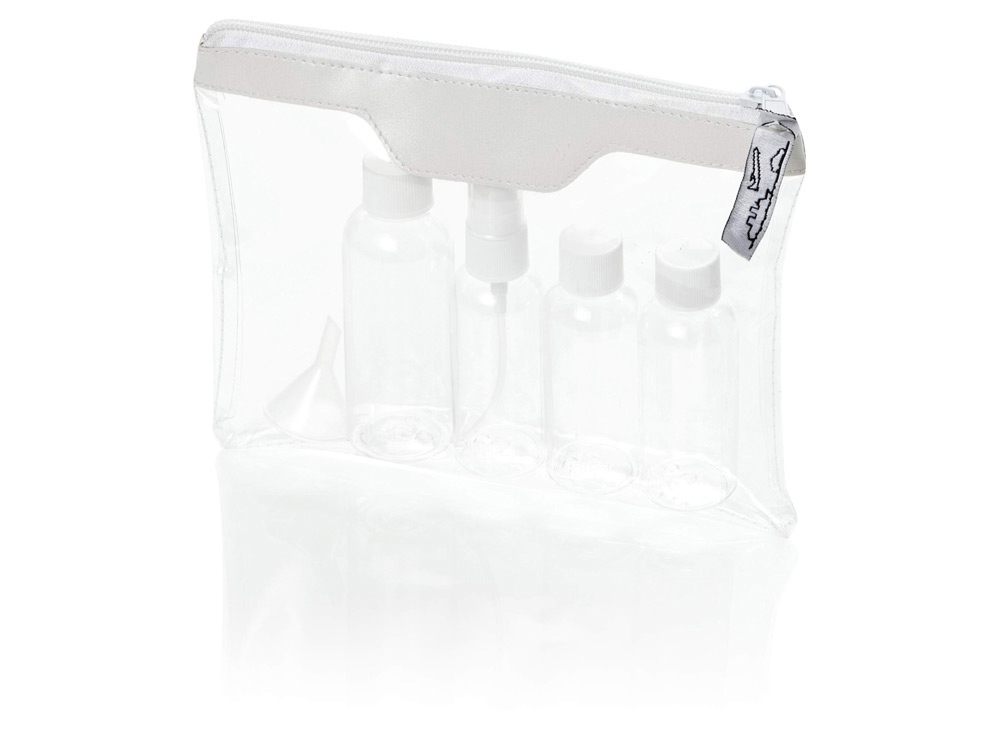 Одобренный дорожный набор бутылок для полетов Munich. Включает 2 бутылки по 50 мл, 1 бутылку на 90 мл и 1 пульверизатор. ПВХ.