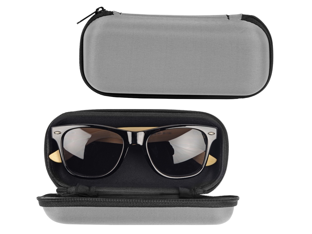 Солнцезащитные очки с бамбуковыми дужками в сером футляре