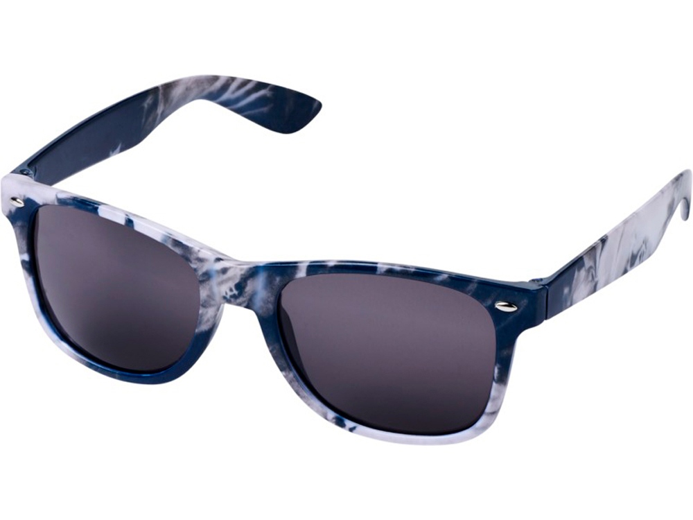 Солнцезащитные очки ретро-дизайна Sun Ray с модной пестрой оправой. В соответствии со стандартами EN ISO 12312-1 и UV 400 линзы относятся к категории 3. Поликарбонат. Тампопечать (1 цвет (цветные изделия)) на данный товар осуществляется бесплатно. Оплачивается только настройка оборудования в размере 3600 рублей на весь тираж.