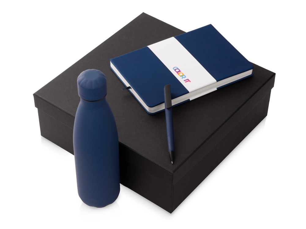Подарочный набор c блокнотом C3, ручкой и термобутылкой, темно-синий