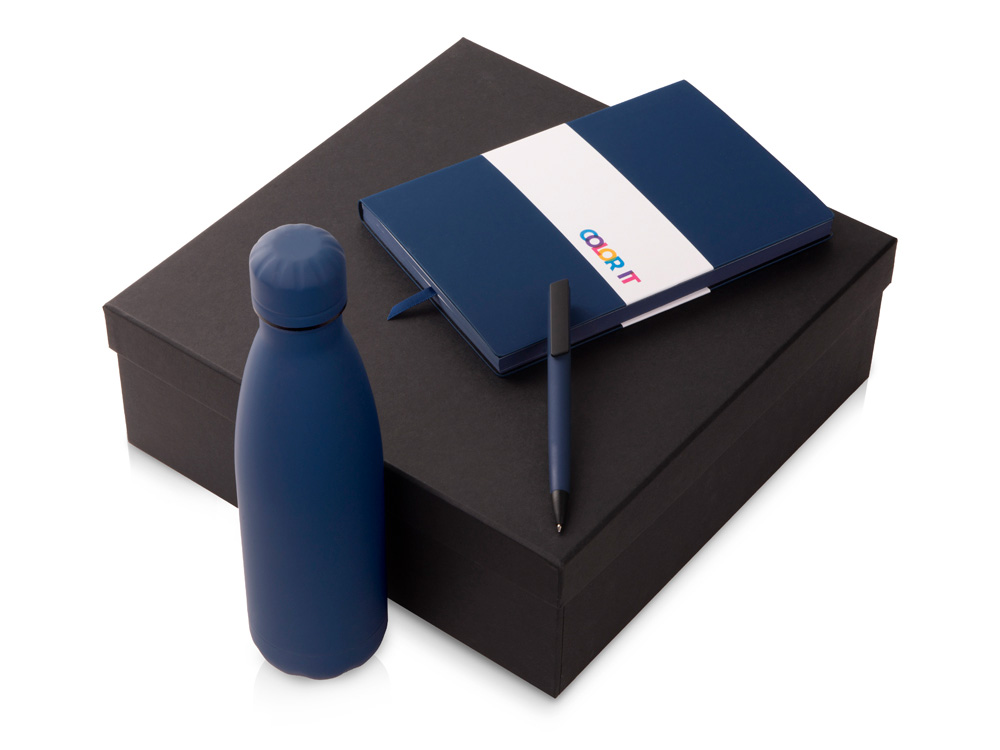 Подарочный набор c блокнотом C1, ручкой и термобутылкой, темно-синий
