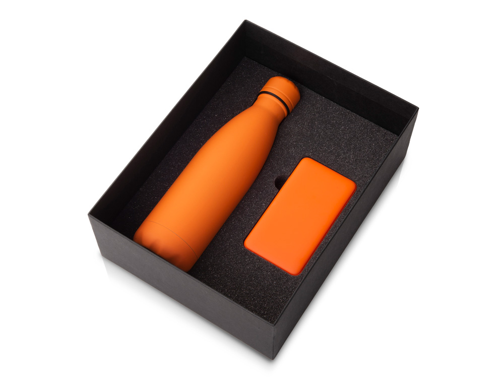 Подарочный набор с термобутылкой и повербанком С1, 5000 mAh, оранжевый