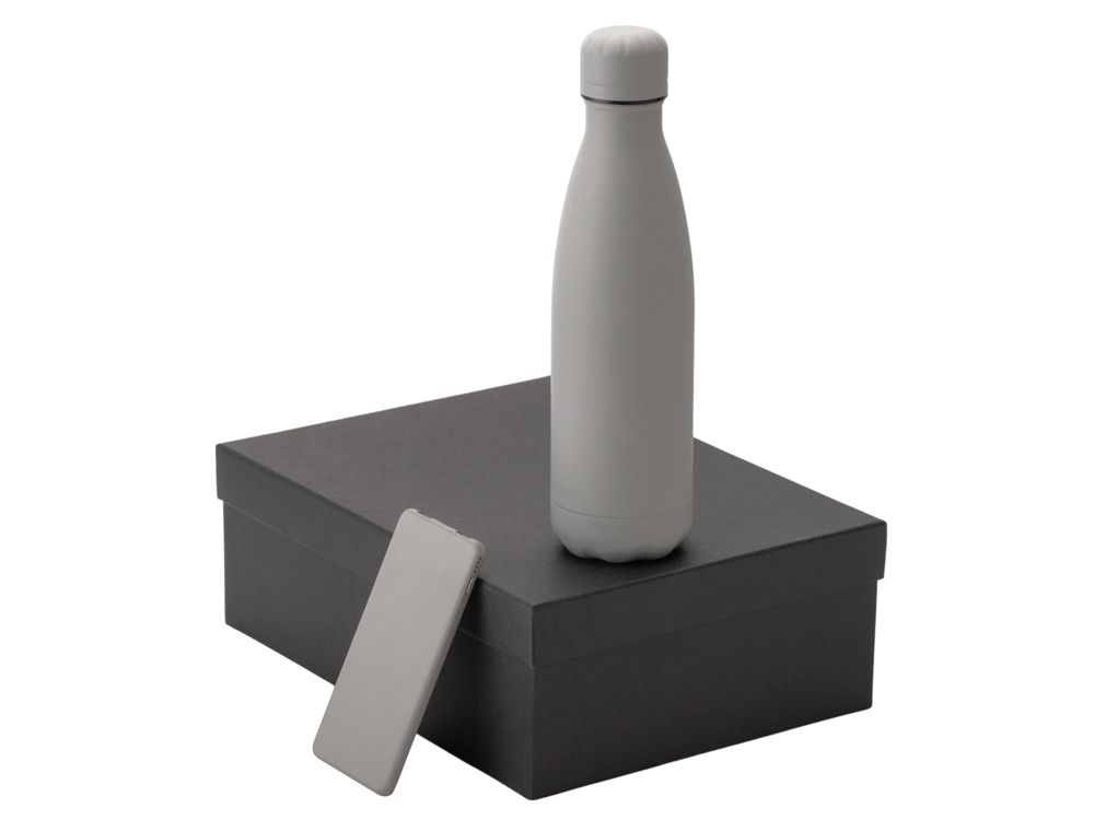 Подарочный набор с термобутылкой и повербанком С1, 5000 mAh, серый