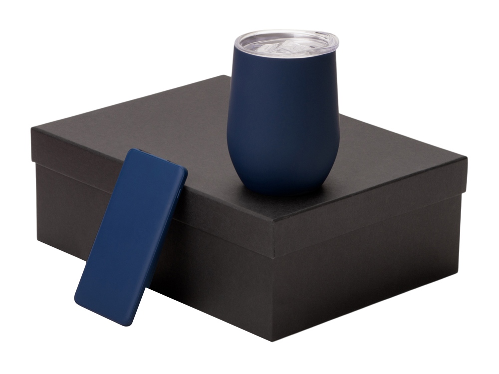 Подарочный набор с термокружкой и повербанком С1, 5000 mAh, темно-синий