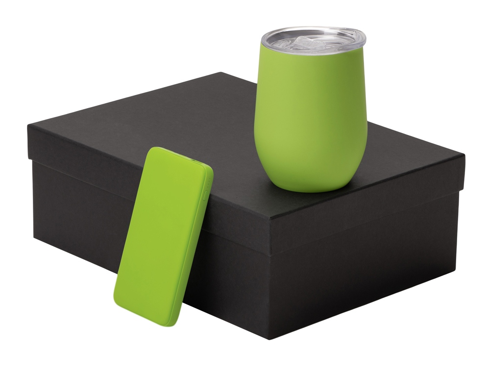 Подарочный набор с термокружкой и повербанком С2, 10000 mAh, зеленое яблоко