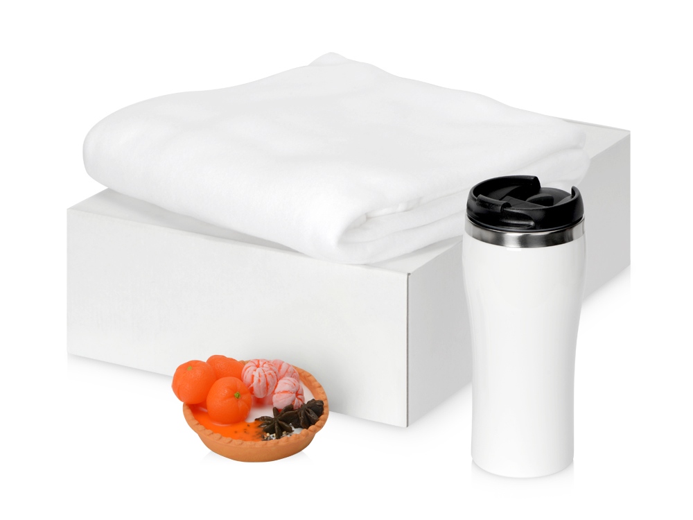 Подарочный набор с пледом, мылом и термокружкой, белый