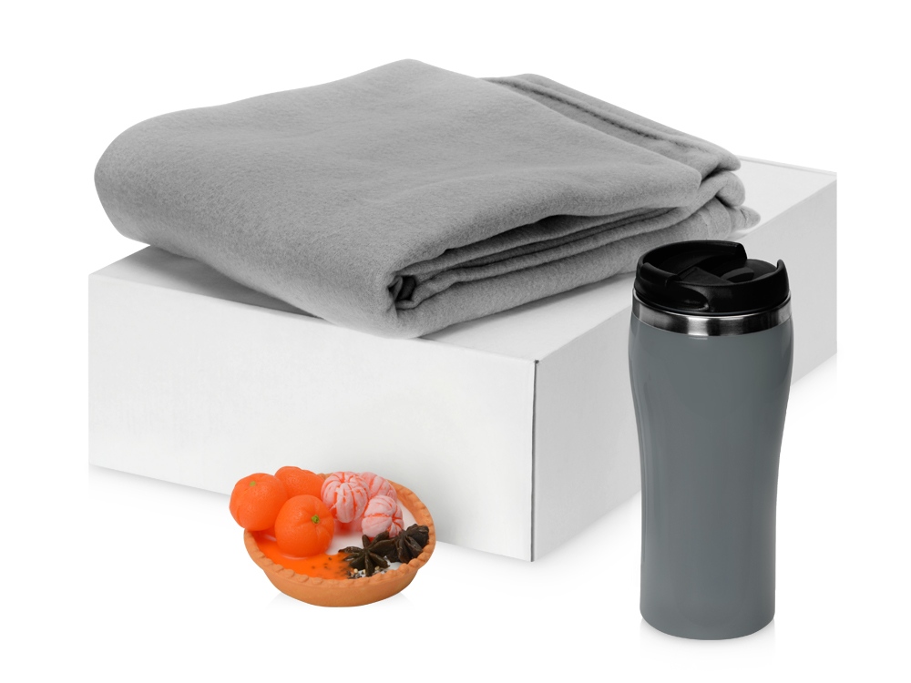 Подарочный набор с пледом, мылом и термокружкой, серый