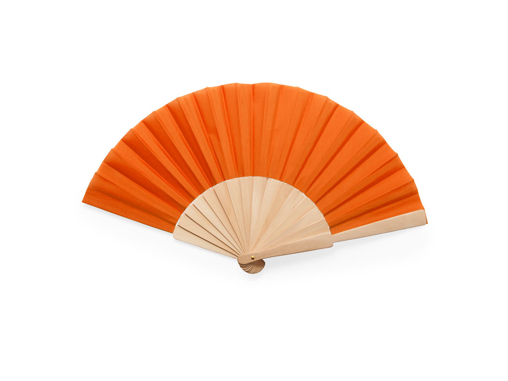 Веер CALESA с деревянными вставками и тканью из полиэстера, оранжевый