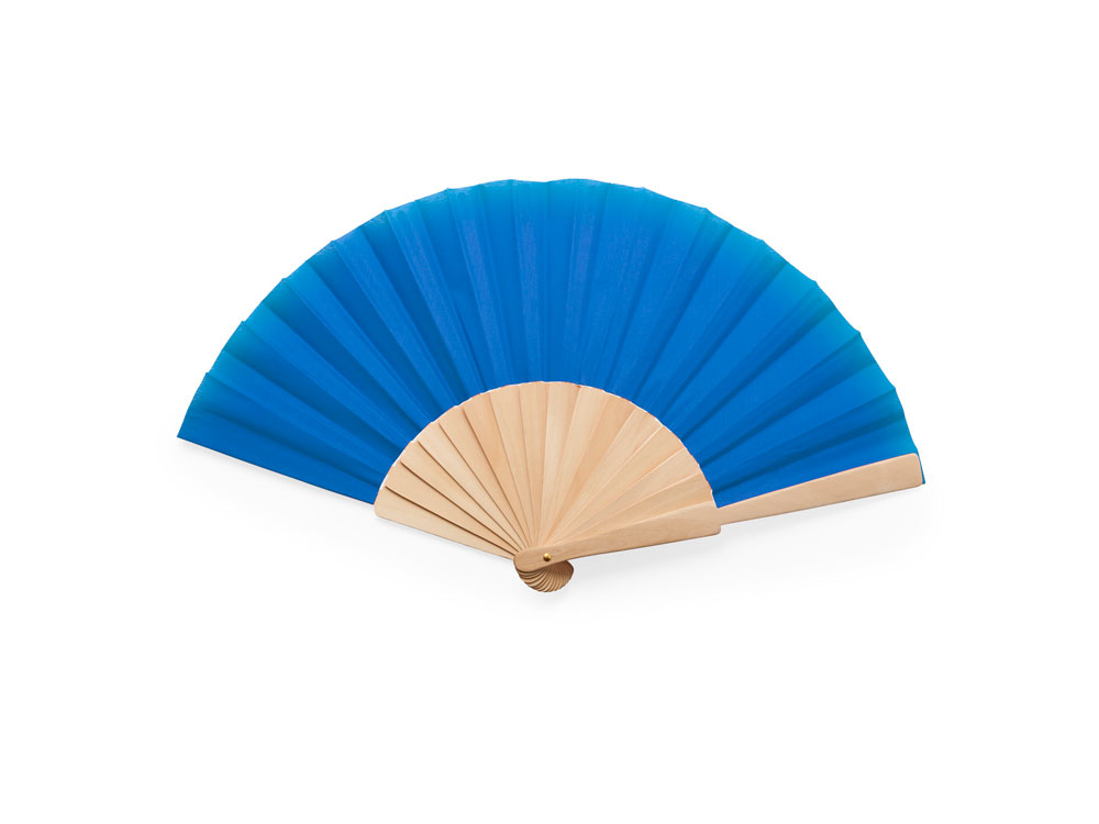 Веер CALESA с деревянными вставками и тканью из полиэстера, голубой