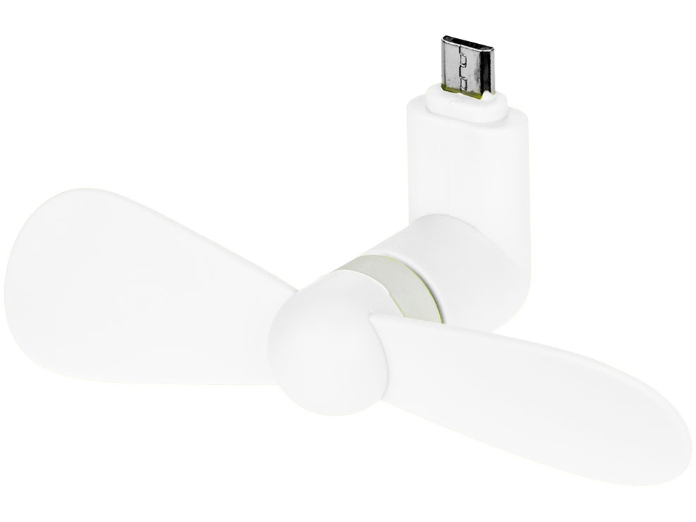 Вентилятор Airing микро ЮСБ. Вентилятор работает с большинством смартфонов и планшетов. Съемный силиконовый пропеллер для безопасного использования и удобного хранения. Работает на батарее вашего медиа девайса. Пластик и силикон. Тампопечать (1 цвет (цветные изделия)) на данный товар осуществляется бесплатно. Оплачивается только настройка оборудования в размере 3600 рублей на весь тираж.