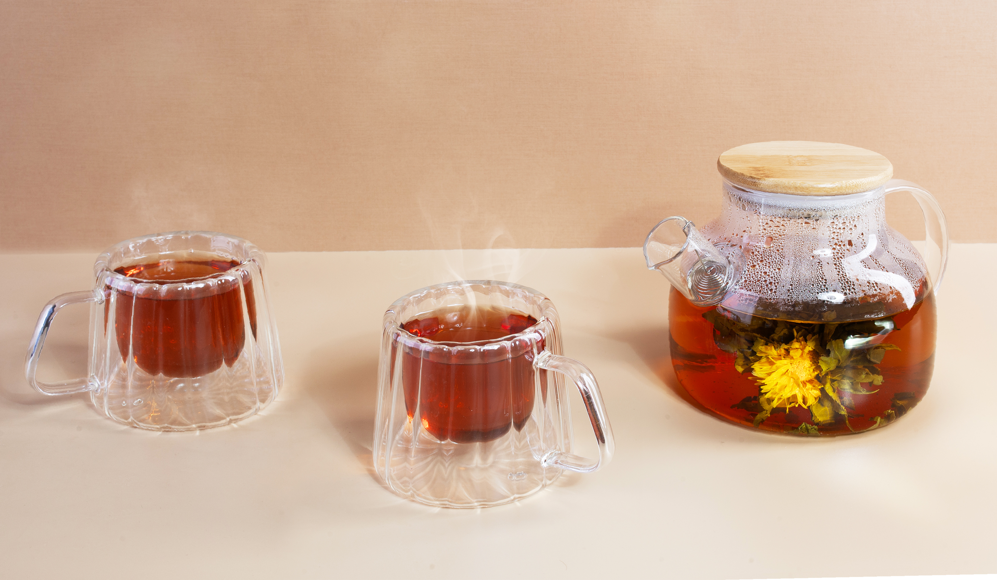 Набор подарочный "Чайные традиции" чайник, 2 кружки, прозрачный