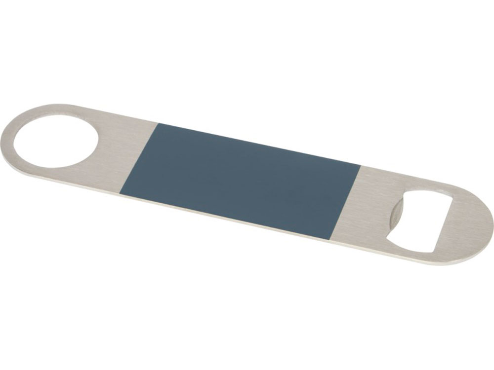 Открывалка для бутылок из нержавеющей стали с большой цветной областью в центре.